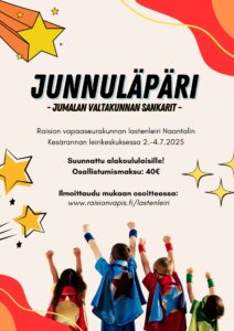 Lastenleiri Naantalin kesärannassa Päivämäärä 2.7.2025 Aika 18:00 Paikka Naantalin kesärannan leirikeskus Lastenleiri 2.-4.7.2025